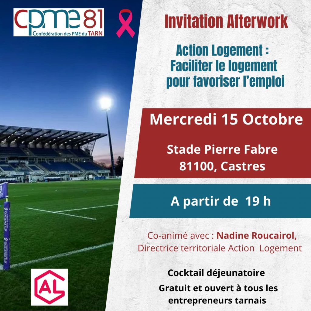 Avec toute l’équipe de la CPME du Tarn, nous vous donnons rendez-vous pour un afterwork informatif, convivial, gratuit et ouvert à tous les dirigeants tarnais avec un cocktail local, dans l’un des temples du sport tarnais où bat le coeur du Castres Olympique